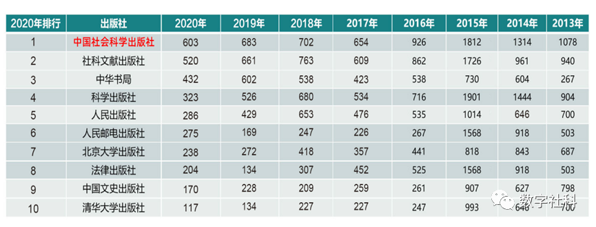 依据“世界图书馆联机数据”(OCLC)海外馆藏数据为基础的“中国图书世界馆藏影响力调查报告”显示:2013-2020年,中国社会科学出版社已经连续多年在海外图书馆社会科学类图书入藏品种数量排名中,位列第一。