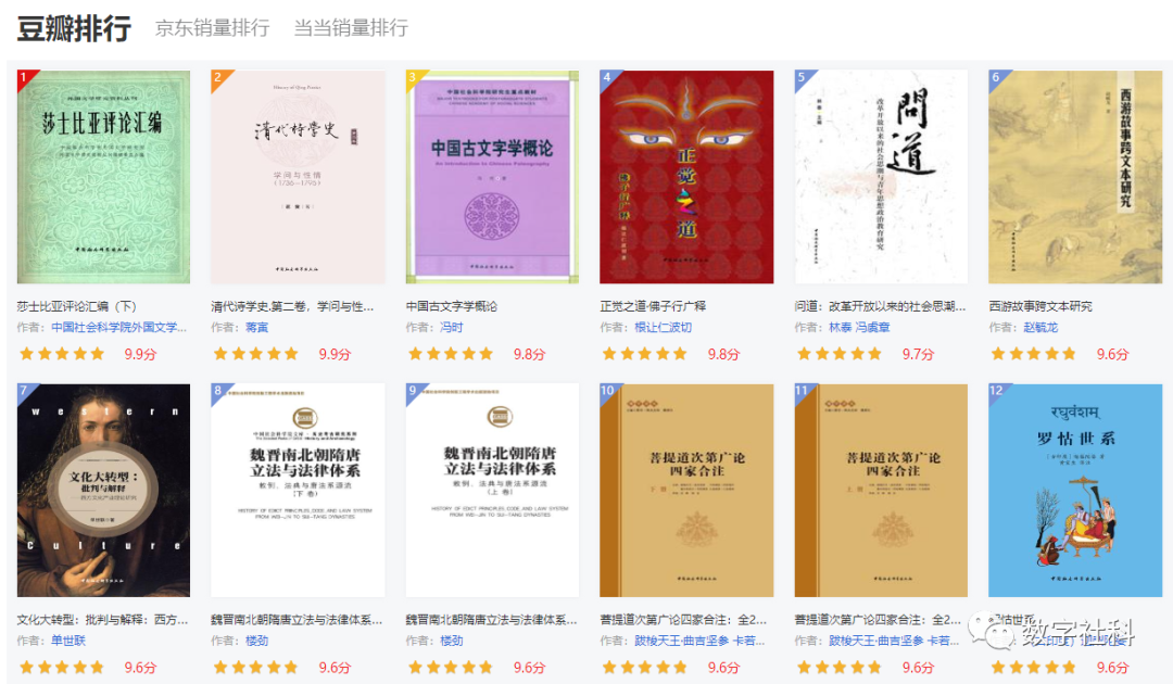 中国社会科学文库V3.1版新引入了豆瓣评分以及京东、当当的销量排行,帮助读者更容易找到高分好评书及热门畅销书。